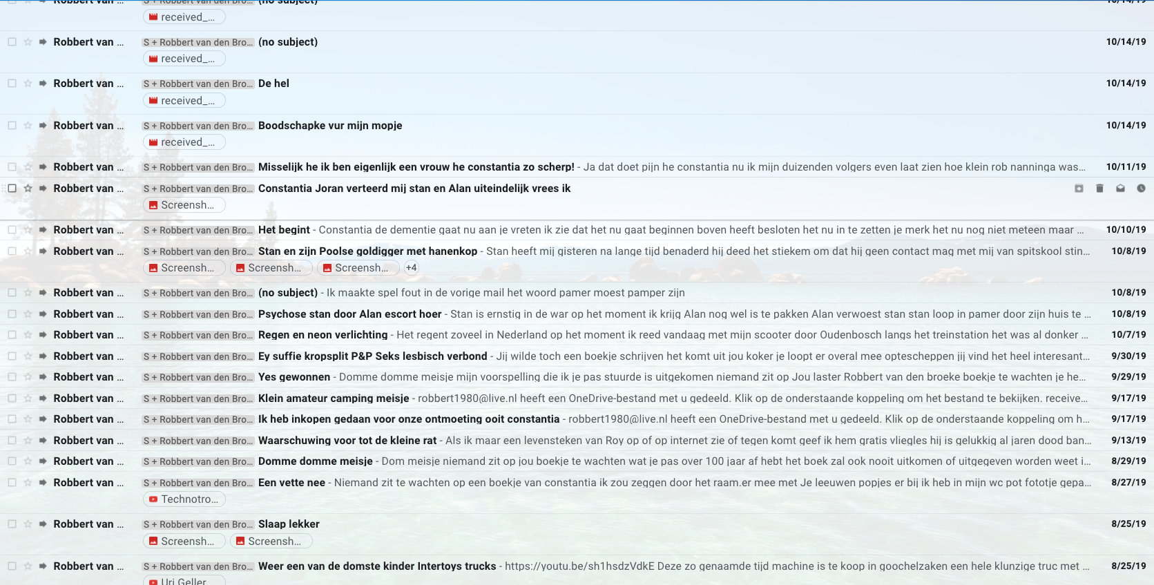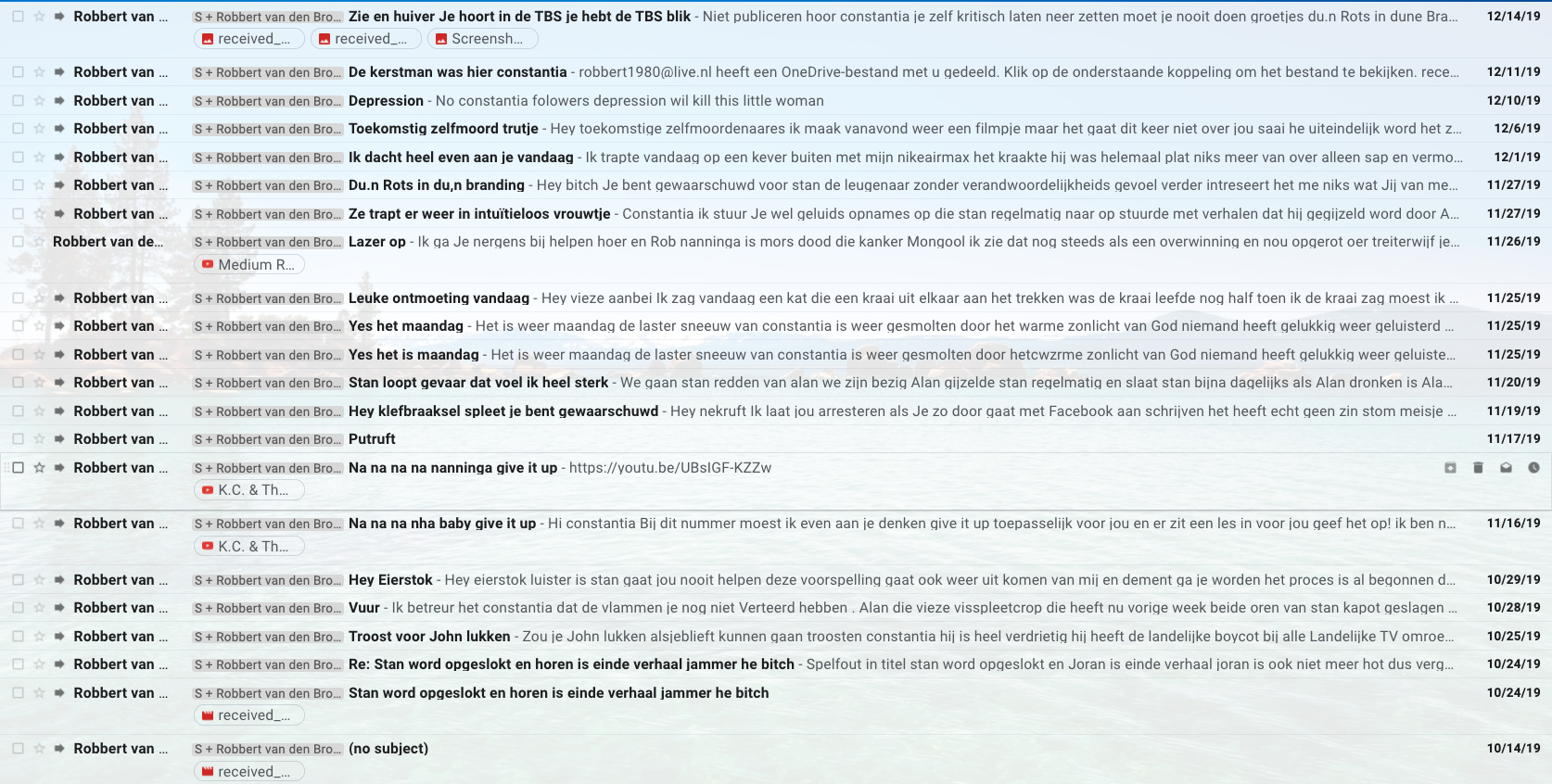 I suddenly couldn’t digest Van den Broeke’s emails anymore. After another hateful email from Robbert on December 14, 2019 I decided to block him completely. Every time Robbert e-mails me now, his email is instantly deleted and Gmail sends an automated message that he has been blocked and why. Since then, not one single email from him has popped up ever again and I have no idea if he sent them. I am very happy with this decision!