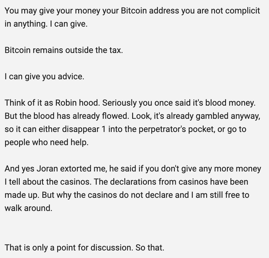 I can’t be sure where Stan got his money, in emails he says he got it from tricking online casinos. Stan Pluijmen claims he’s a modern Robin Hood, stealing from the rich and giving it to the poor.