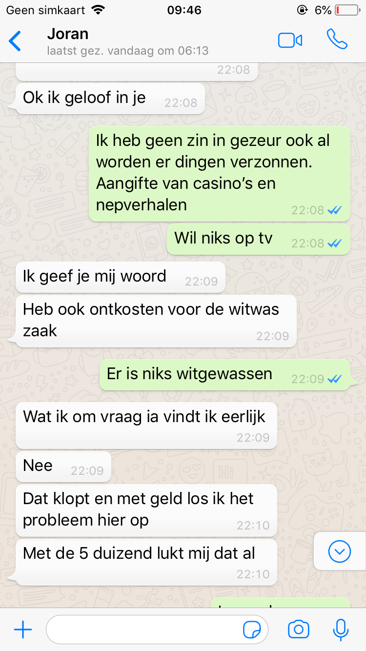 Stan says some interesting things in these audios and especially in this audio “15”: that he hates the web of lies he got into, and that he is threatened from all sides, but that it’s okay by him when/if I publish all his audios because he loves honesty. He also says that he had already recorded an entire audio for me, was “too honest” – and wonders if there is such a thing as “too honest” – and that he consequently deleted this audio. He talks (again) about his (former) drink and coke problem, and says the audios between 2018 and now on average were recorded with this addiction slur. He also asks if I don’t want to make fun of him and that he loves me. He goes on to say that he doesn’t think he can buy everything off with money. He doesn’t feel like thrill journalism about Joran van der Sloot, and that he’s not exactly boosting himself for being Joran’s friend ,and that this journalist who invited both him and me to talk about Joran van der Sloot and co must think he’s retarded. And also in this audio you can notice that he wanted to say something, but then “caught” himself, something “too honest” again?, and then his sentence stops.