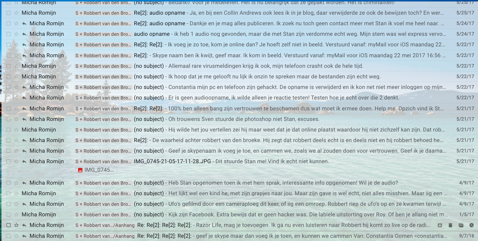Stan Pluijmen confesses in this audio that (indeed) he was “Micha Romijn”. But I could tell by the emails I received there is another person involved, because I recognize Stan’s language and tone of voice, and there were quite some that were not from his pen.