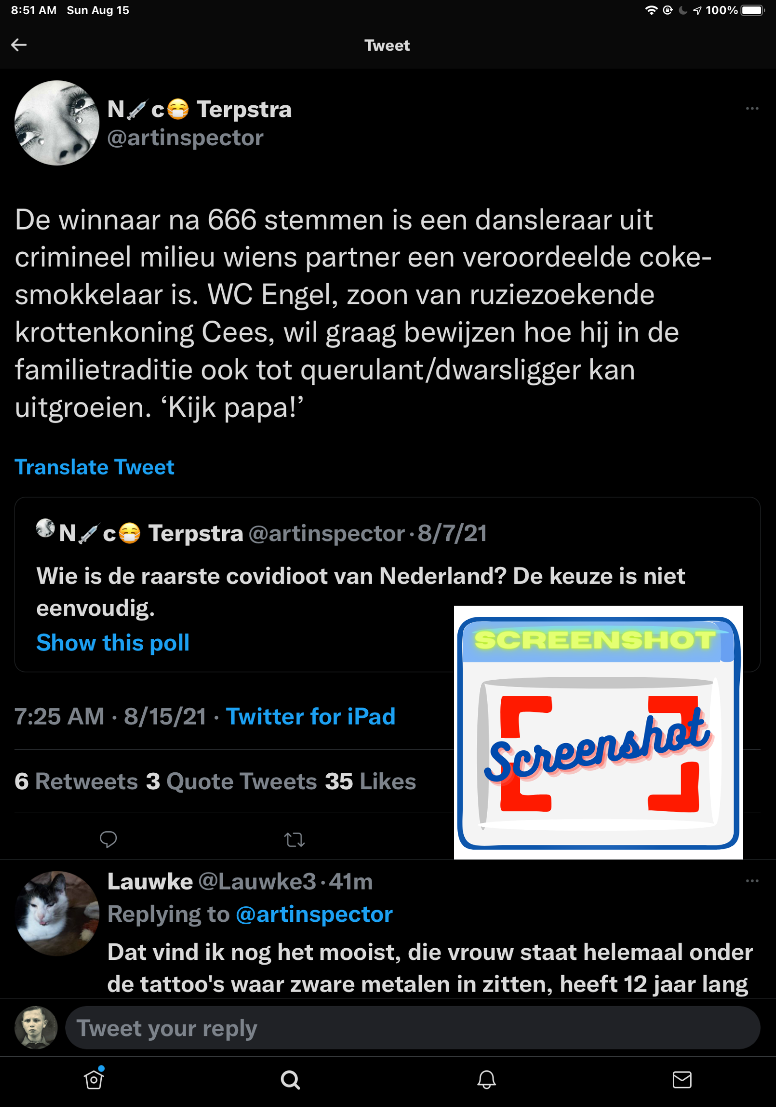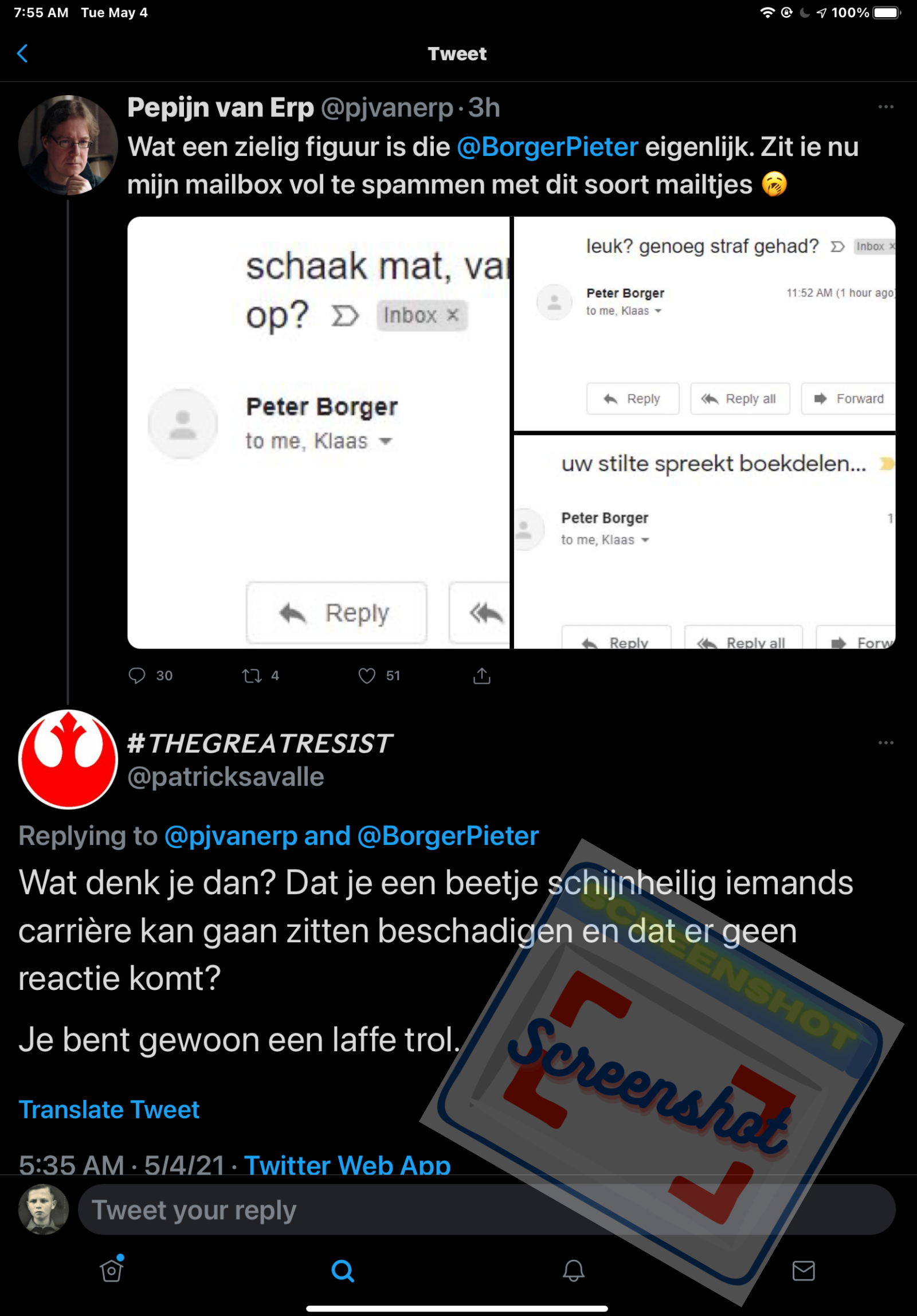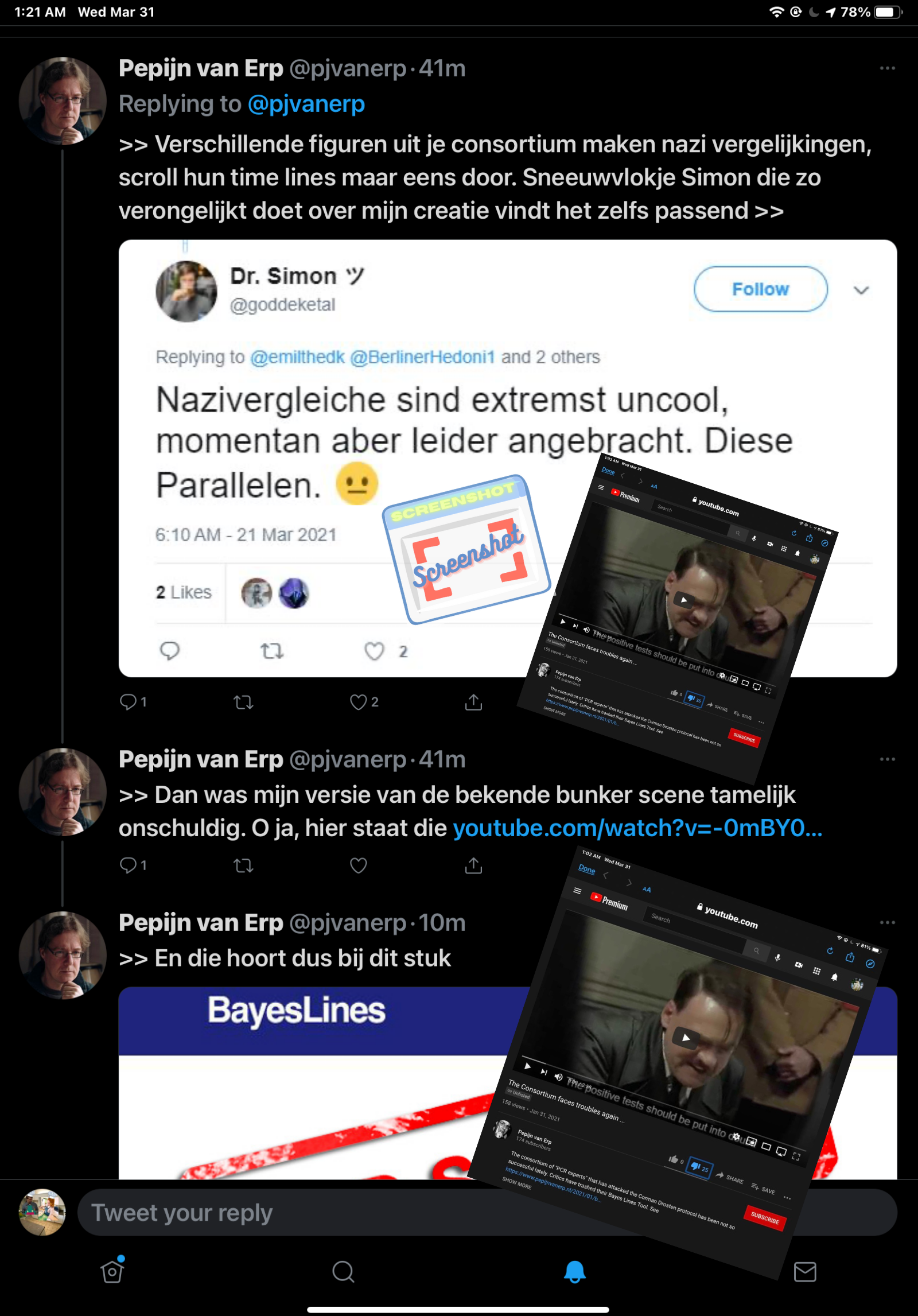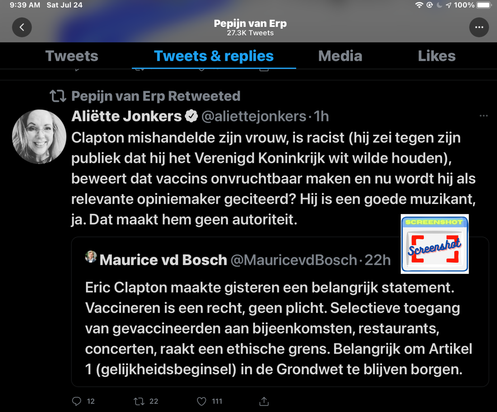 Zo postte op 15 augustus 2020 Pepijn van Erp als reactie op een post van het Twitter account “Ethiek is overal” bij een foto van een Corona-betoging met daarin weliswaar geblurde kinderen met een “Davidsster” de volledige naam van de vader van de twee kinderen. Ofschoon Gert van Dijk van het “Ethiek is overal” account dus juist postte om iets aan de kaak te stellen, viel dat bij mij in de verkeerde aarde als zijnde een tweet die voor extra rottigheid kan zorgen. Dat mijn inschatting correct was, bleek ook, want eronder verscheen bijvoorbeeld al spoedig de ongeblurde foto van de kinderen (die overigens nog steeds online staat ten tijde van het schrijven van dit blog). Toen ik gealarmeerd hierover bij Jan Willem Nienhuys aan de bel trok, reageerde Nienhuys niet. Van Erp verwijderde de tweet wel.