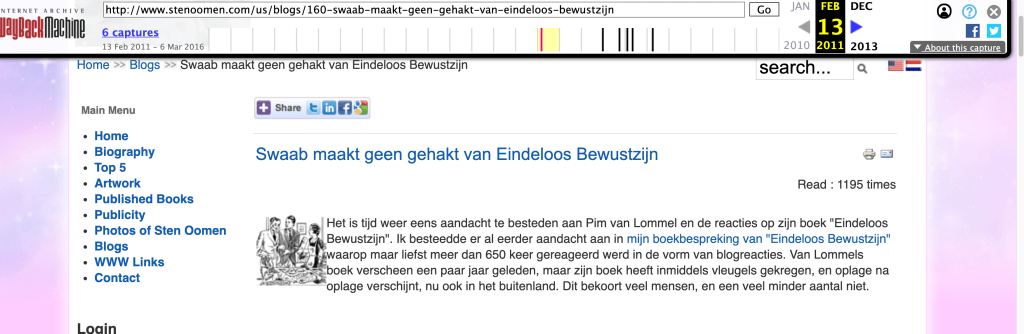 De discussies onder een gemêleerd gezelschap meanderden op onder andere genverbrander.nl (door mij als eerste geregistreerd), stenoomen.nl, kloptdatwel.nl en bijvoorbeeld ook tasmedes.nl voort. Nienhuys postte op het genverbrander.nl forum onder de humoristische naam “Lichtbol”. Na jaren verwijderde ik de betreffende pagina’s en discussies, waar zeer goed aan was deelgenomen, mijn eerste blog over Pim van Lommel had zelfs meer dan 650 reacties ontvangen. Ik kon dit blog en een klein deel van de reacties via Internet Archief terughalen.