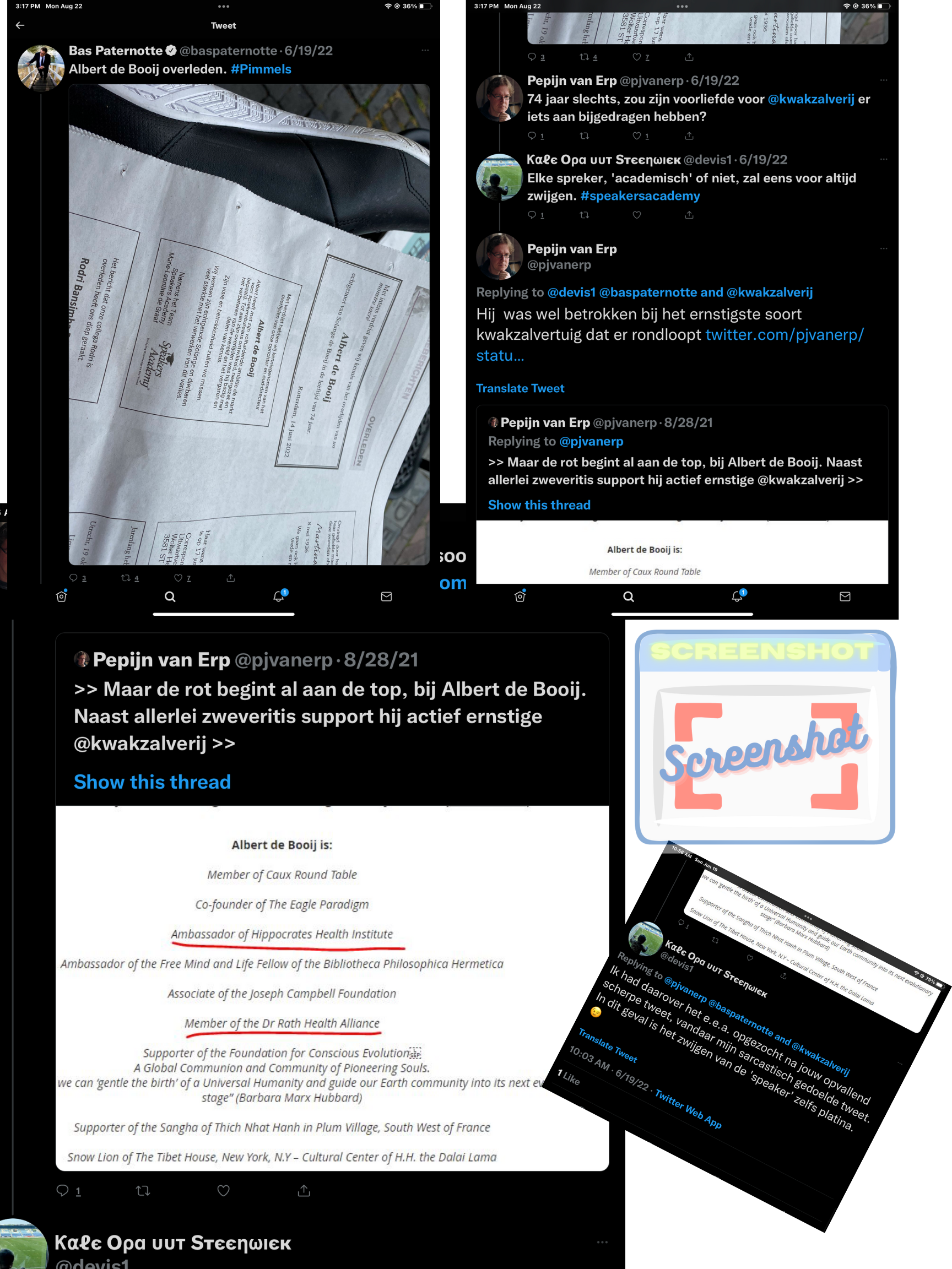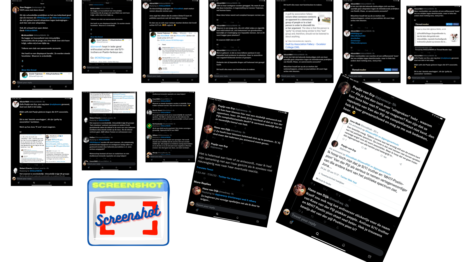 Al deze uitingen zijn 100% letterlijk overgenomen van Twitter accounts in 2020-2021 en met name geuit op de volgende Twitter accounts: Skepsis bestuurslid @pjvanerp (de meerderheid), Skepsis bestuurslid @aliettejonkers, @DanielTuijnman e.a.. De uitspraak links boven “Muil houwe, wappie” stamt van Chris Klomp.