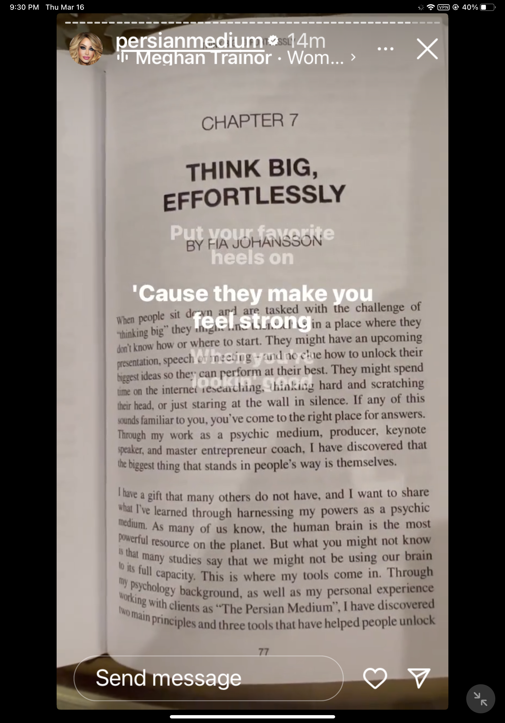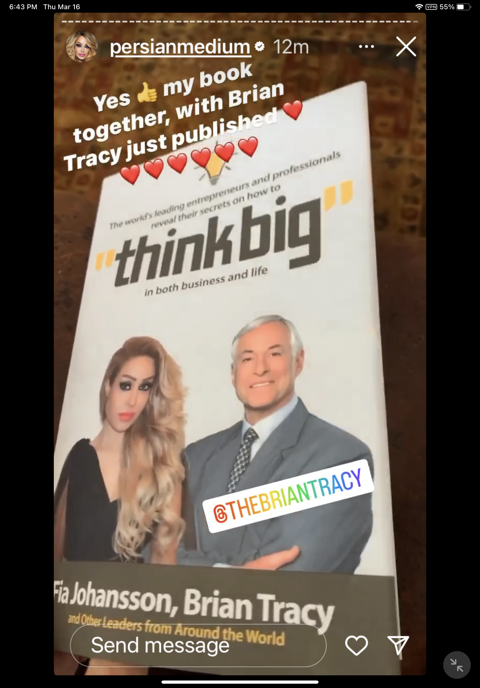 Mise à jour du 16 mars 2023. Le 16 mars 2023, Fia Johansson a partagé à nouveau une histoire Instagram dans laquelle elle a montré le livre “Think(ing) Big”. Tout comme pour le livre “Success Strategies”, il semble que la couverture du livre varie en fonction de l’auteur participant qui présente “son” livre avec Canfield et/ou Tracy.