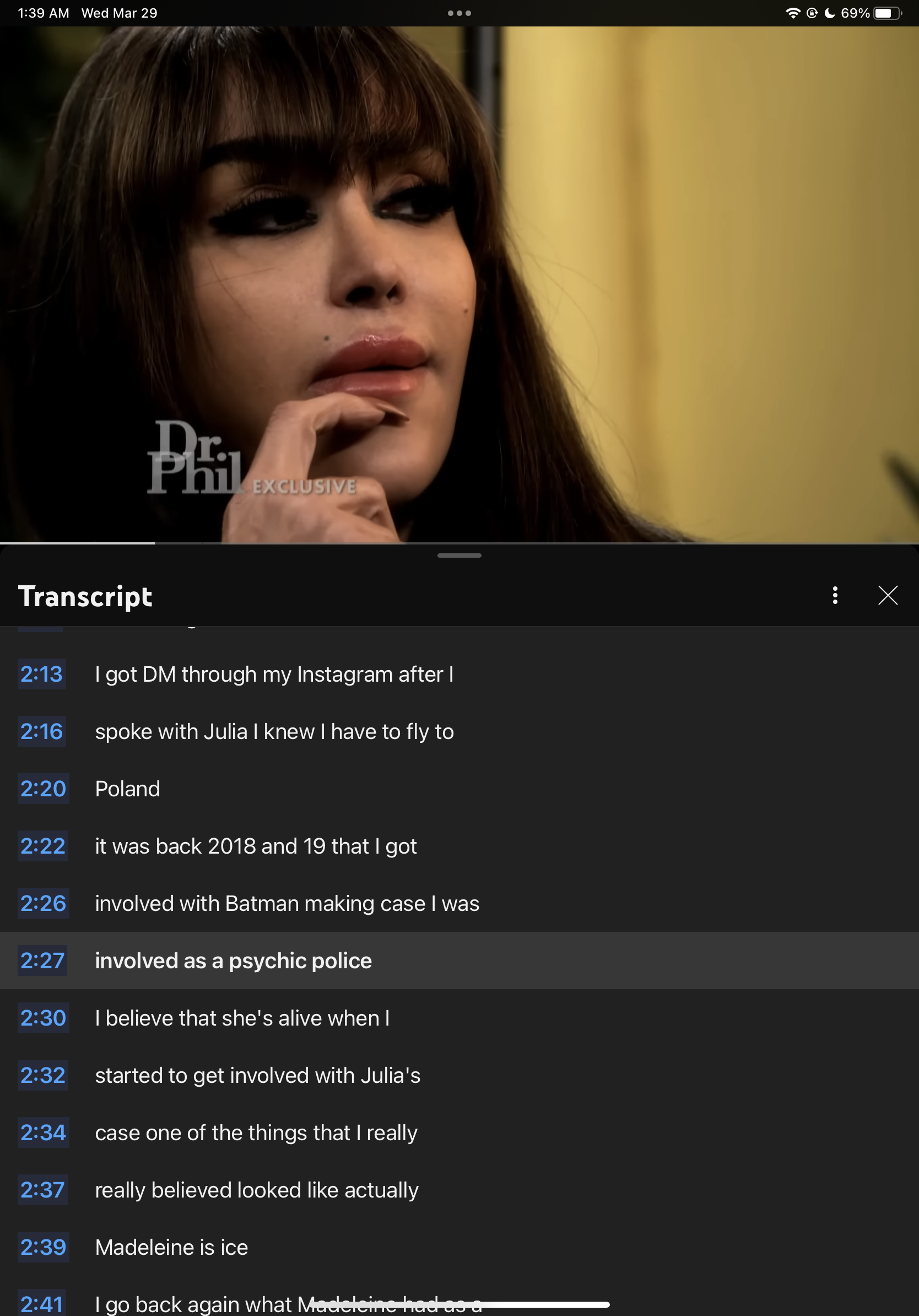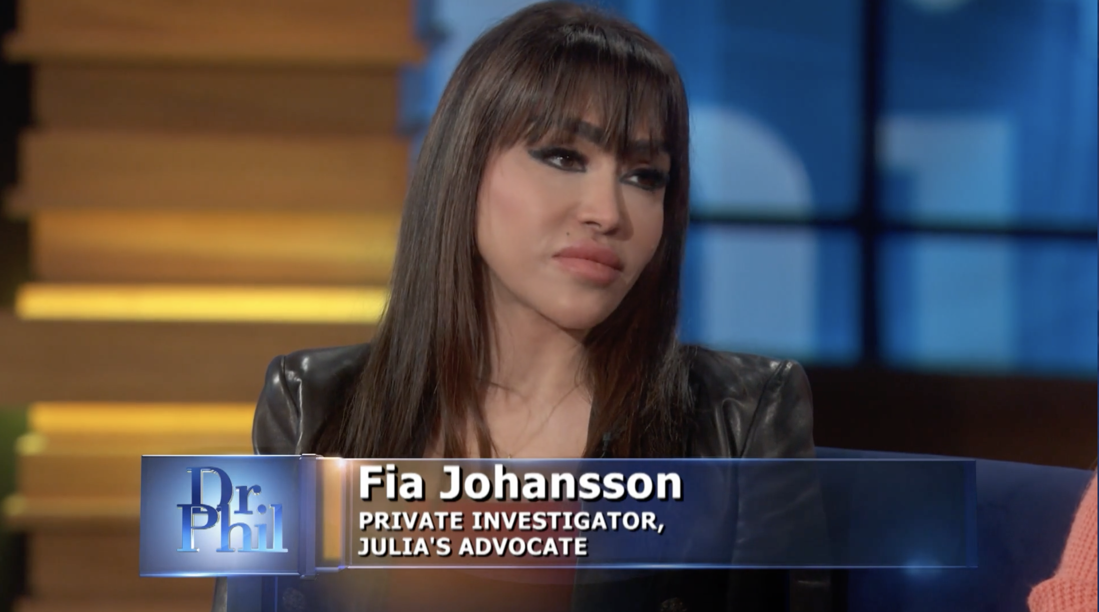 Mise à jour du 28/29 mars 2023.Fia Johansson et Julia étaient invitées dans l’émission de Dr. Phil du 27 mars 2023. Cela ne s’est pas déroulé comme une victoire pour les deux femmes. Dr. Phil les a interrogées très sceptiquement. Quelques captures d’écran pour donner une idée: