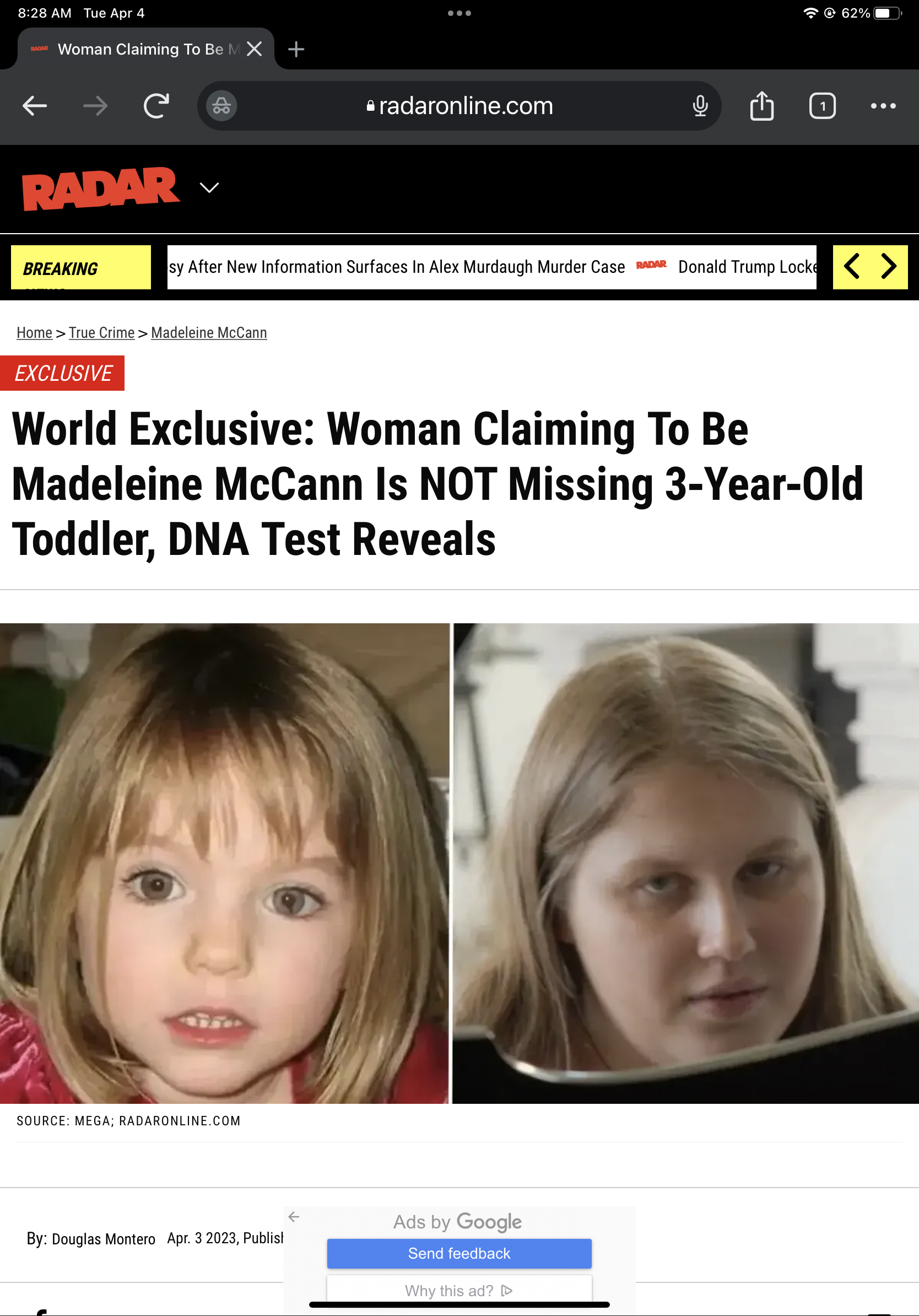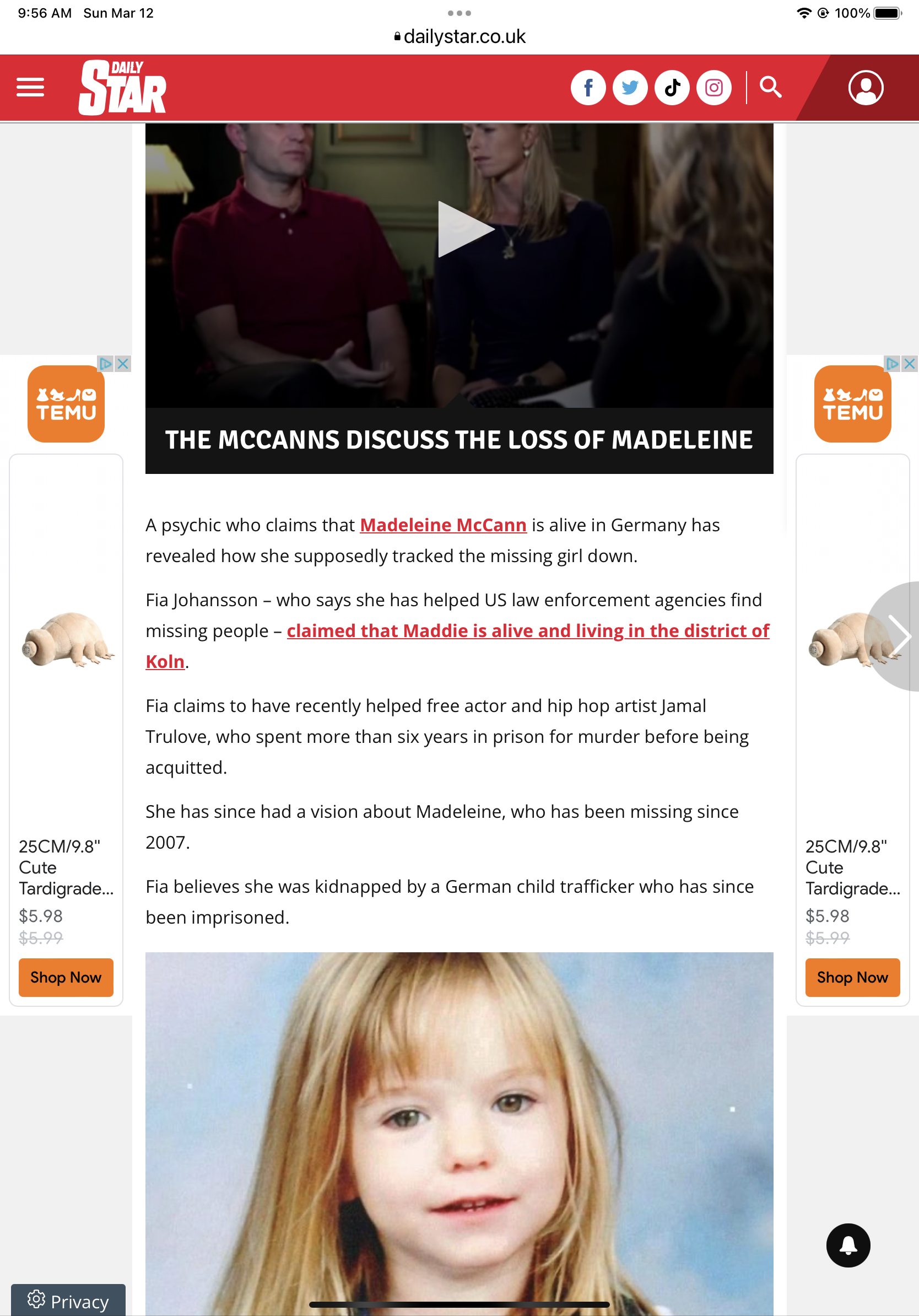 Il n’est pas clair pour moi pourquoi elle continue de présenter sa propre histoire sur Maddie McCann, dans laquelle elle affirme que Maddie vit en Allemagne, comme une histoire à succès sur son site web et sa chaîne YouTube, alors qu’elle est maintenant même venue avec une variante polonaise de “Maddie McCann”. Je suis également surpris que les médias grand public américains ne semblent pas ou peu vérifier l’histoire de Johansson, comme en témoignent des phrases telles que “Je sais que vous avez des clients célèbres” de la dame de CBC et la répétition sans questions critiques de l’affirmation de Johansson selon laquelle elle a résolu plus de 20 affaires de disparition ou de crime (froid).