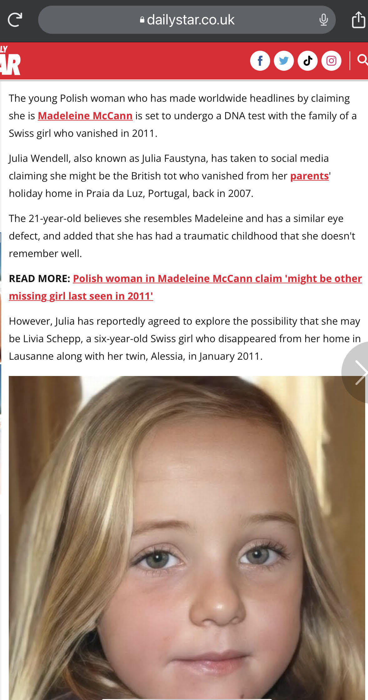 Nous sommes en 2023, mais Madeleine McCann, disparue depuis 2007, est-elle toujours en vie ? Mon intérêt a été éveillé lorsque mon collègue enquêteur, Martijn Mastenbroek, a évoqué l’affaire Maddie McCann dans ses histoires Instagram. Une certaine Julia Wendell, également connue sous les noms de Julia Wendlet, Julia Wandelt et Julia Faustyna (c’est en tout cas une femme avec de nombreux noms) est devenue très active depuis février 2023 en créant plus de cent profils Instagram pour affirmer qu’elle est Madeleine McCann ou pense l’être. Julia présente apparemment une anomalie oculaire similaire à celle de McCann, un colobome à son œil droit au même endroit.