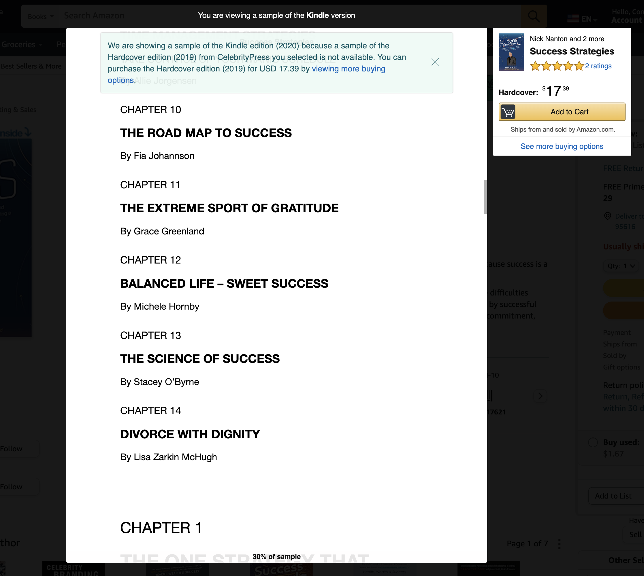 Le livre “Success Strategies” selon Amazon. Il s’avère que Johansson n’est pas co-auteur du livre, mais a contribué avec un chapitre aux côtés de treize autres auteurs:
