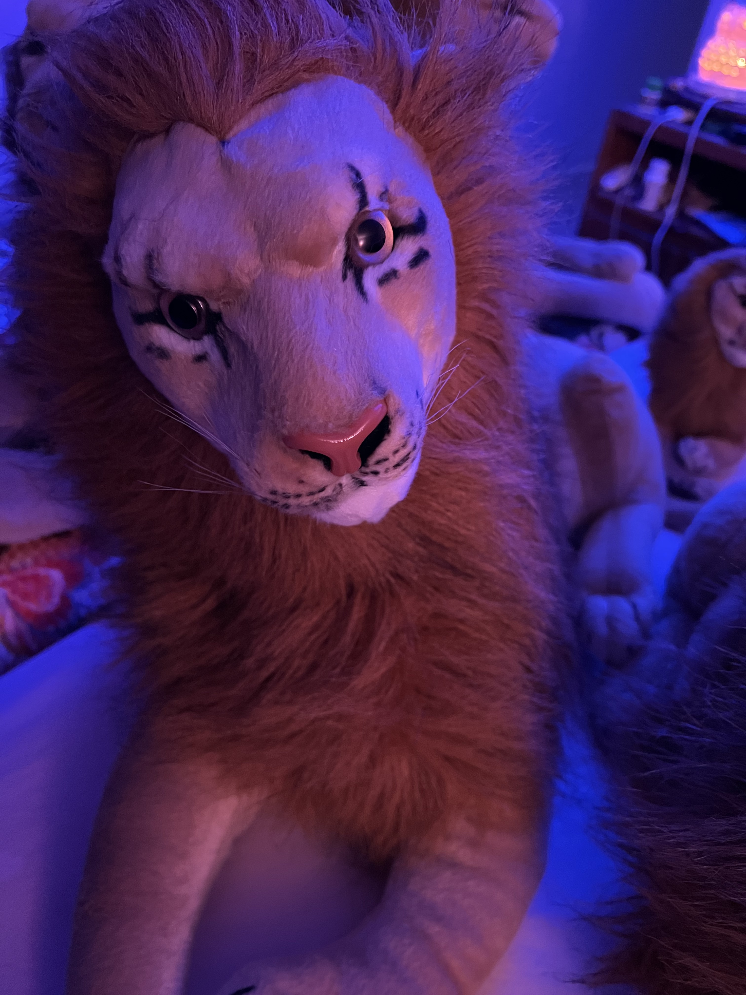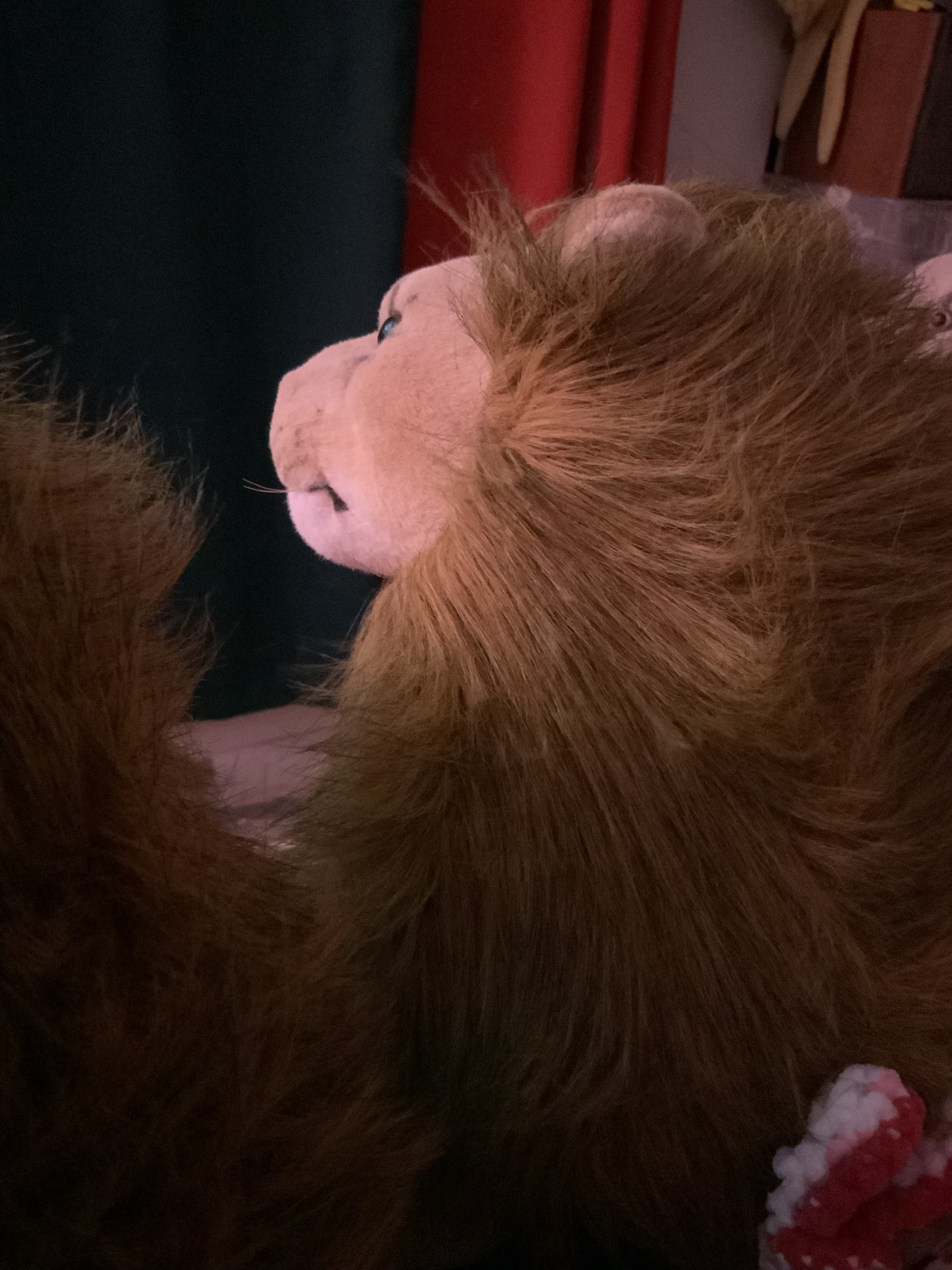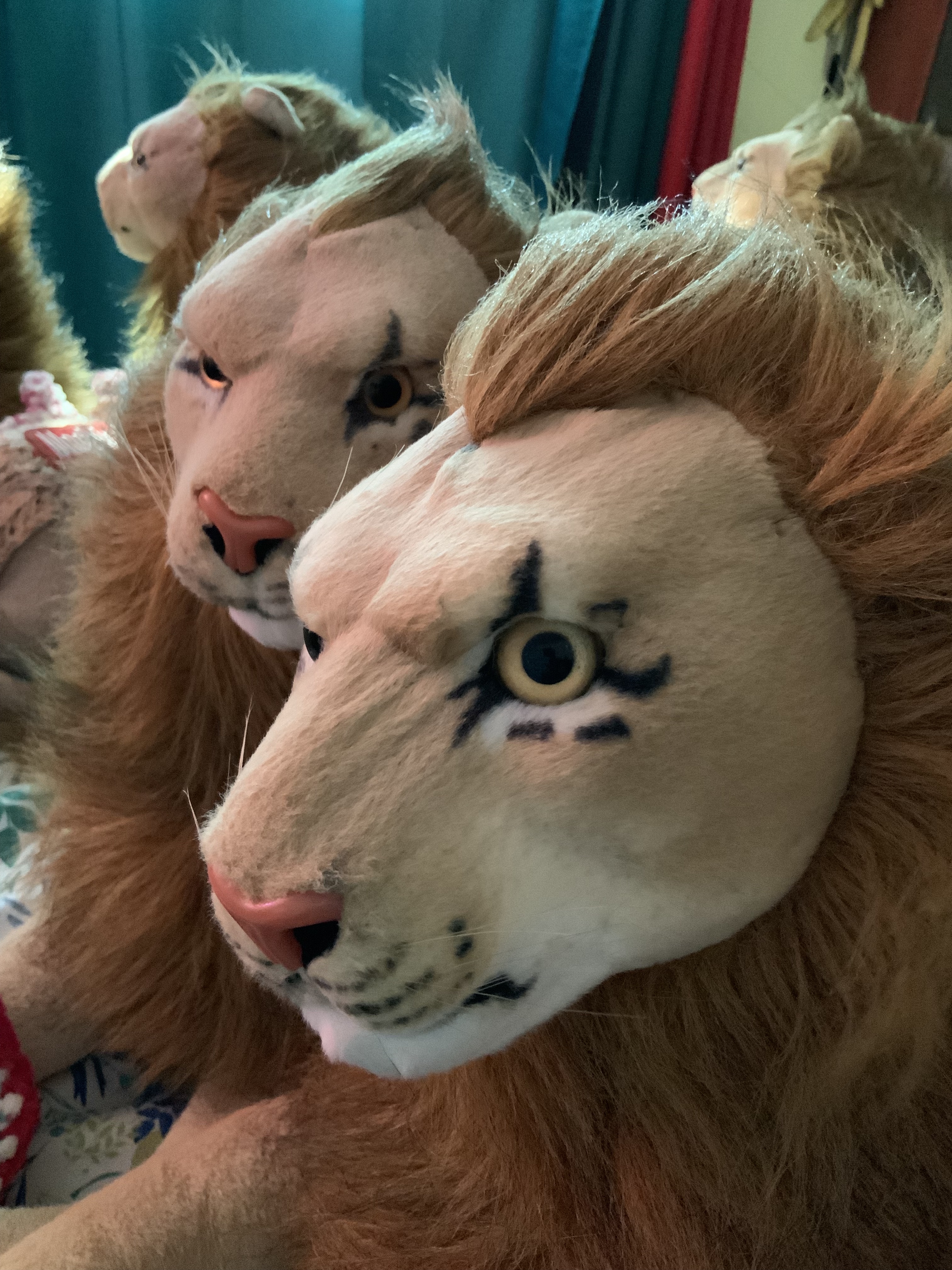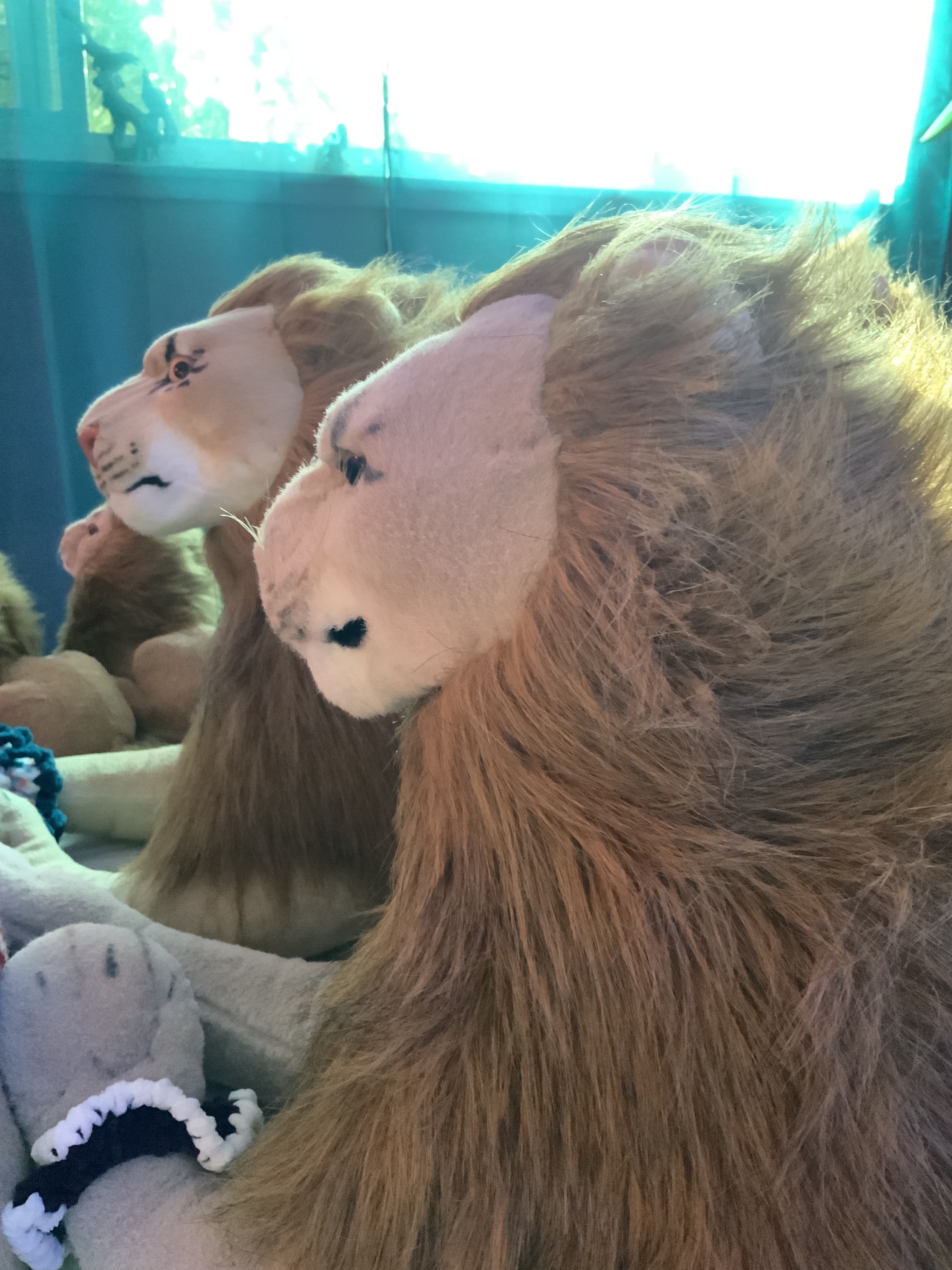 Regarding the visual lion updates, I had left off with the treasurer Rob Treasure Lion. Since then, two more lions have been added to the Inner Crew. Rob Traveler Lion has an irresistible “Who, me?” look in his eyes, saying, “Madam, why are you looking at me like that?” before devotedly falling into my arms. Rob Fierce has a striking fiery glow in one of his eyes.