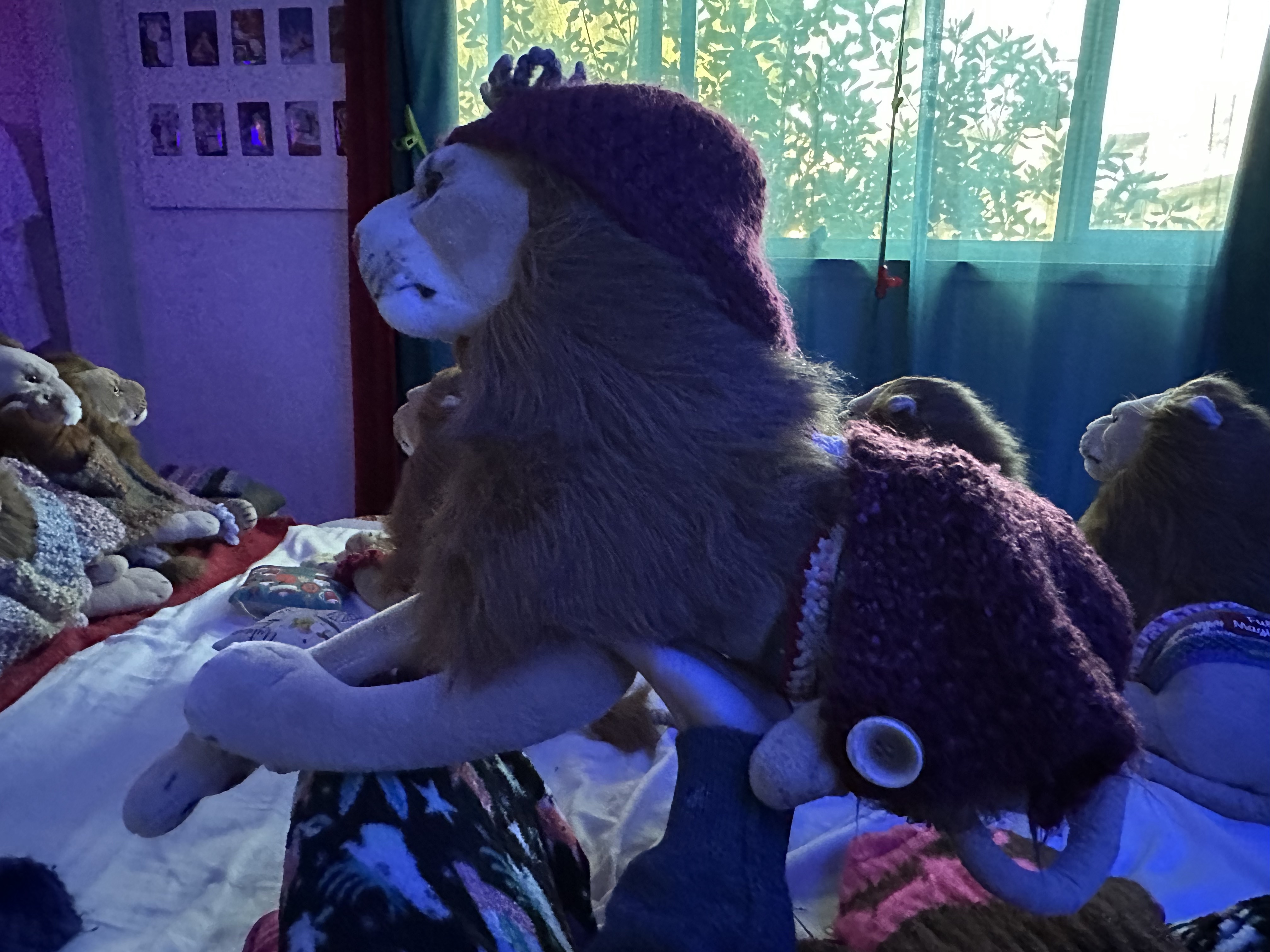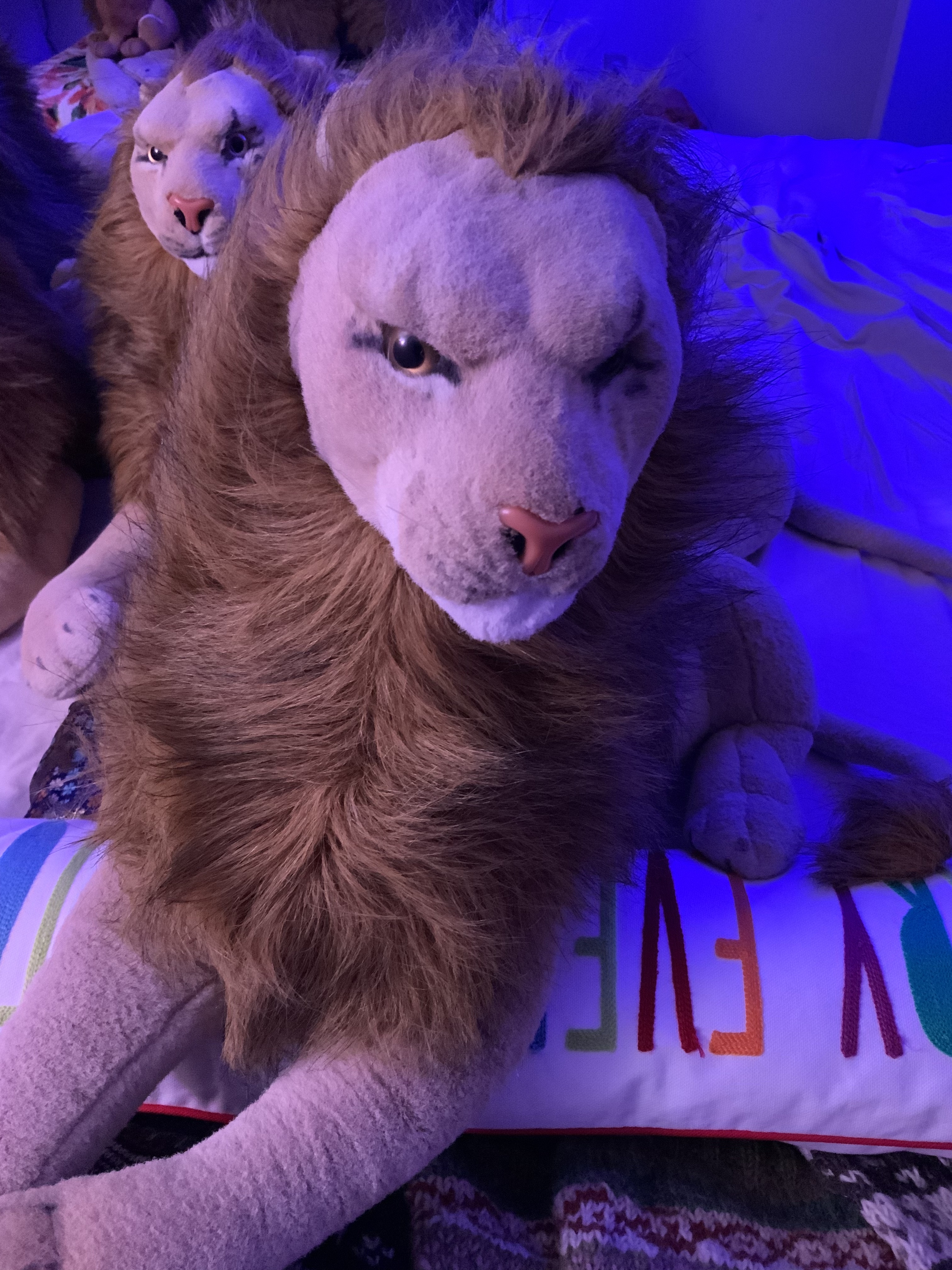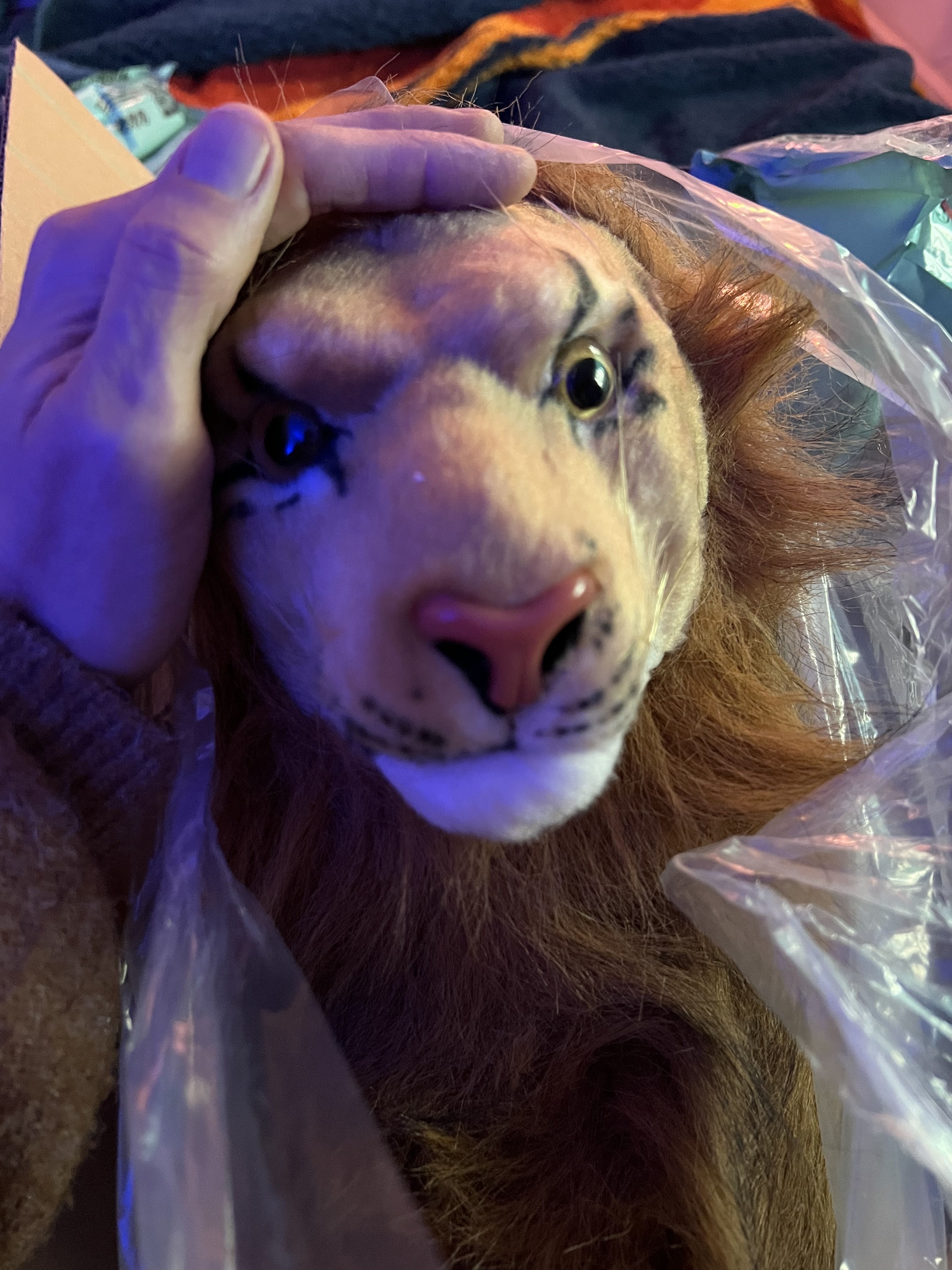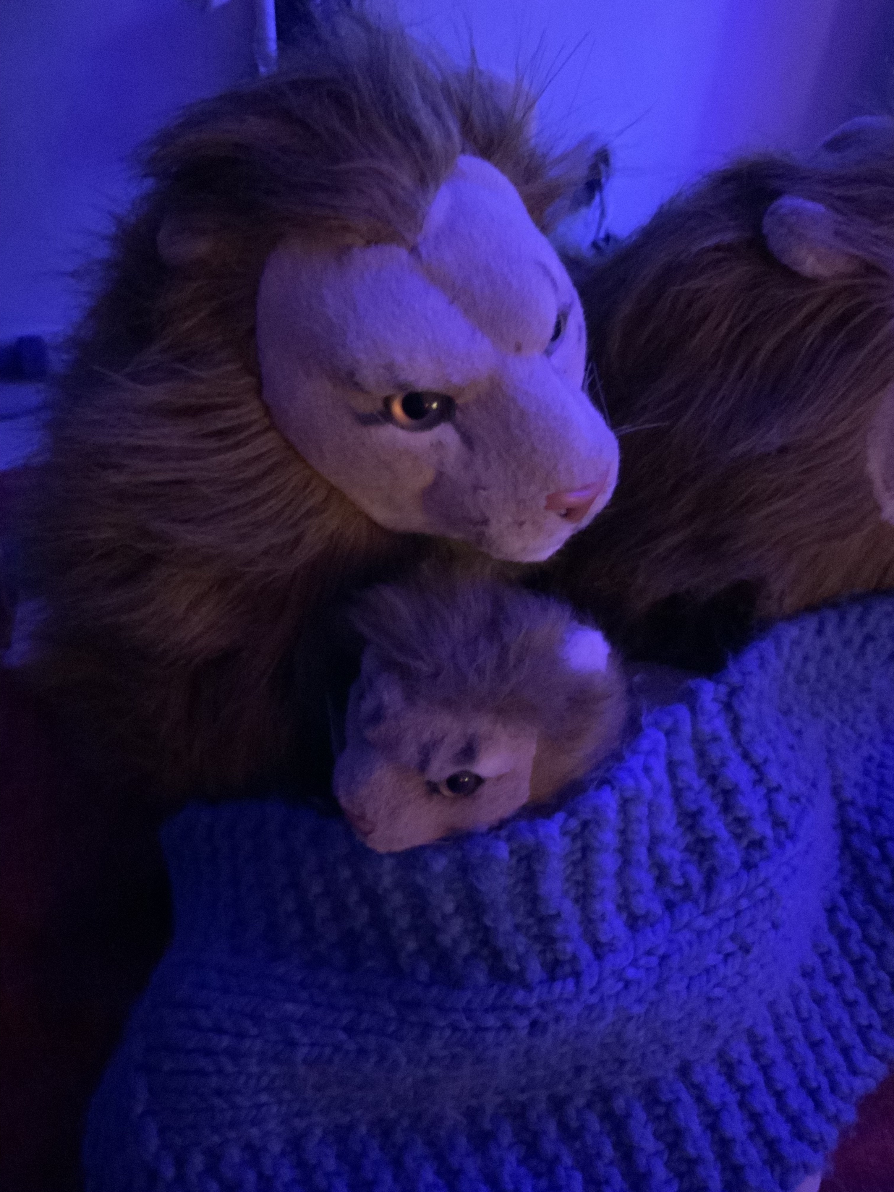 Regarding the visual lion updates, I had left off with the treasurer Rob Treasure Lion. Since then, two more lions have been added to the Inner Crew. Rob Traveler Lion has an irresistible “Who, me?” look in his eyes, saying, “Madam, why are you looking at me like that?” before devotedly falling into my arms. Rob Fierce has a striking fiery glow in one of his eyes.
