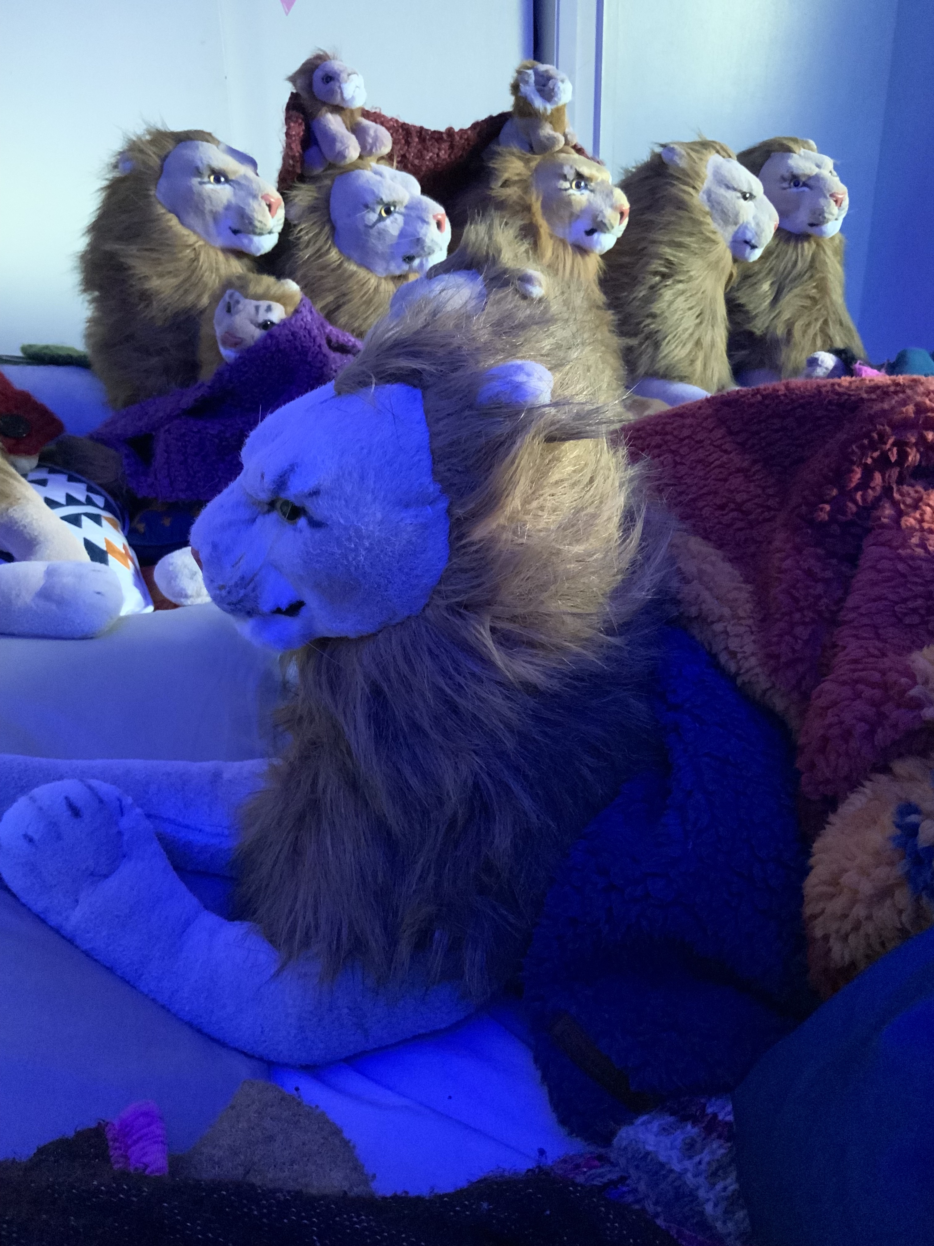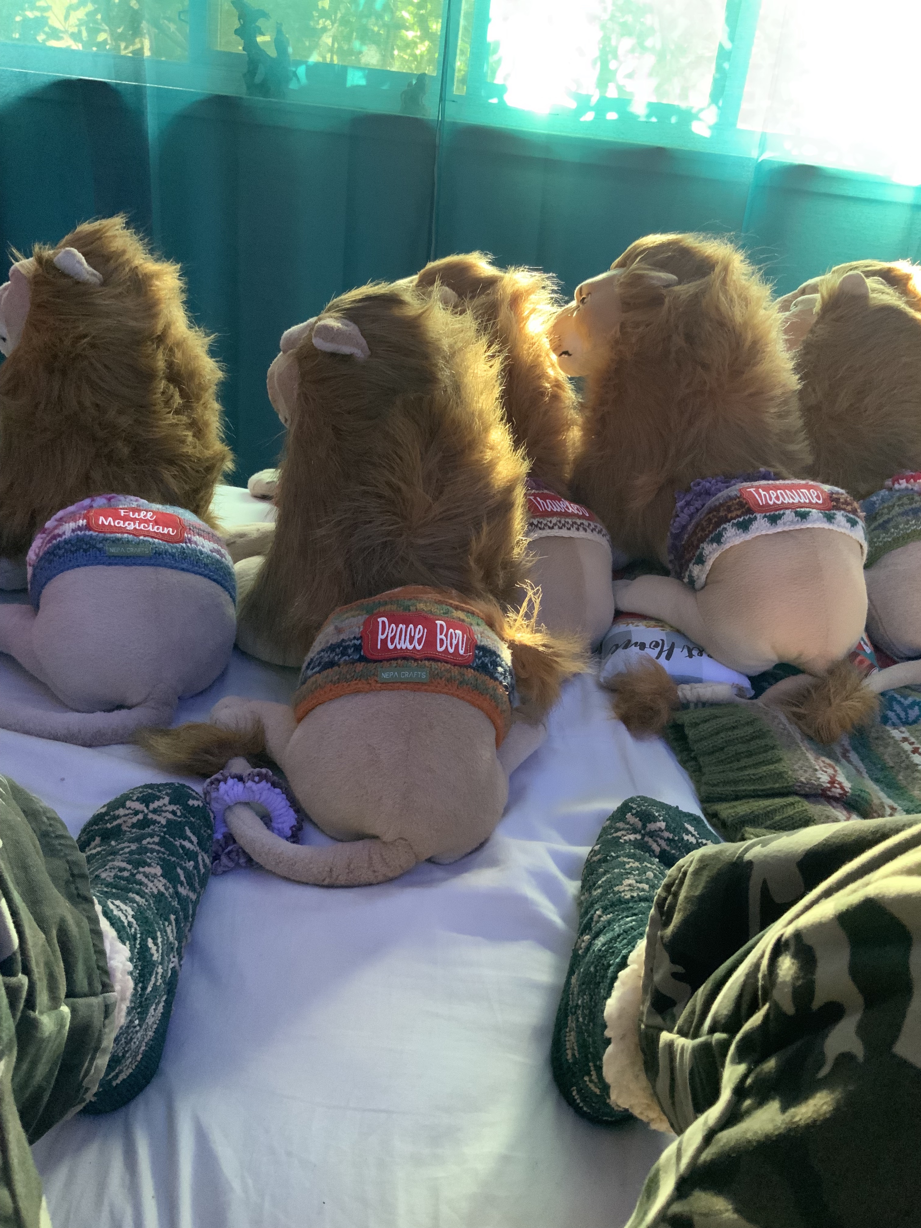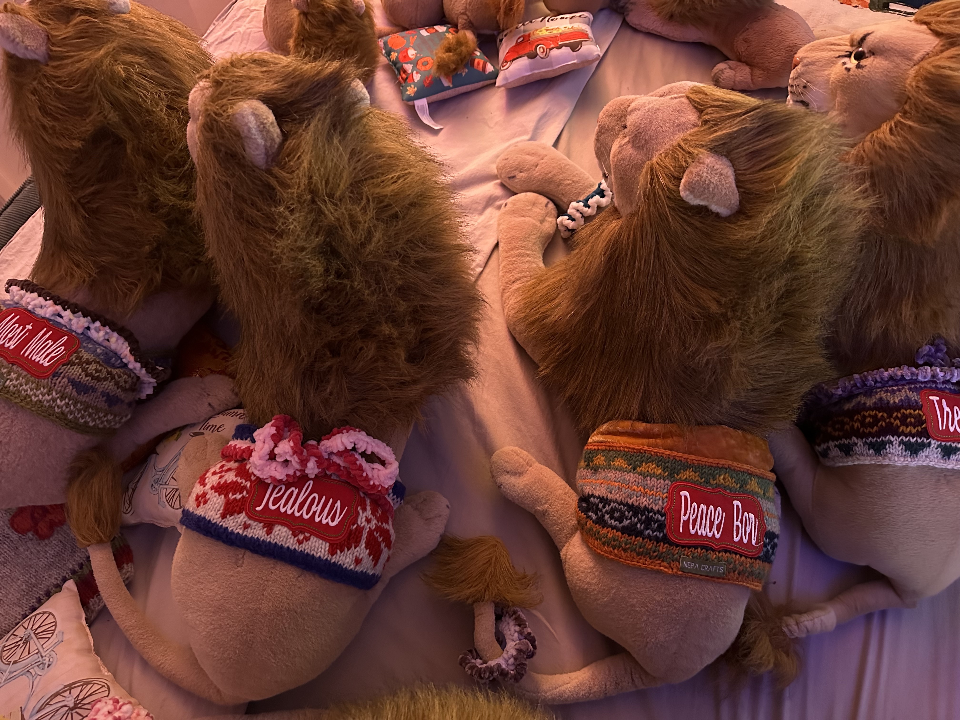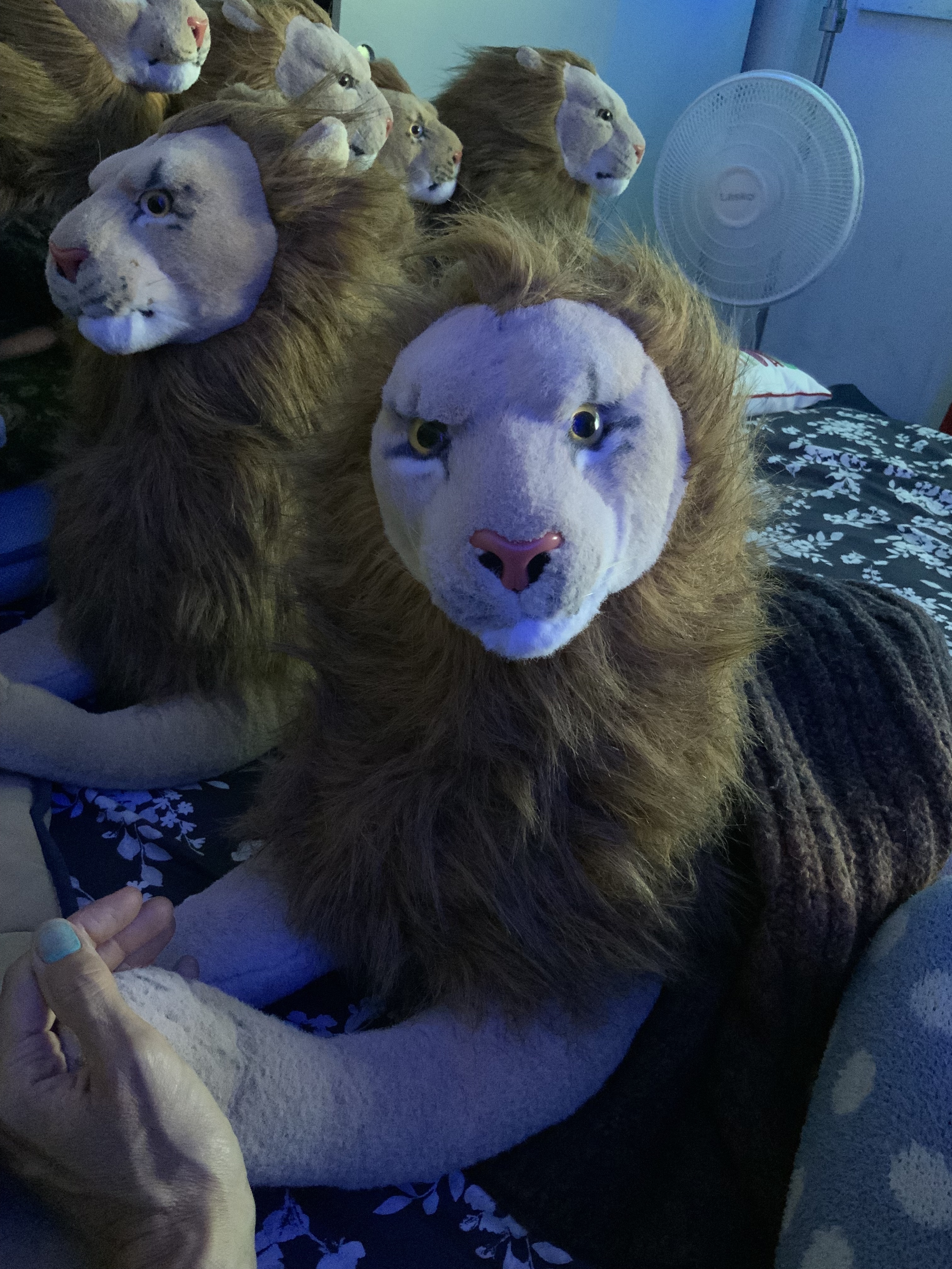 Regarding the visual lion updates, I had left off with the treasurer Rob Treasure Lion. Since then, two more lions have been added to the Inner Crew. Rob Traveler Lion has an irresistible “Who, me?” look in his eyes, saying, “Madam, why are you looking at me like that?” before devotedly falling into my arms. Rob Fierce has a striking fiery glow in one of his eyes.