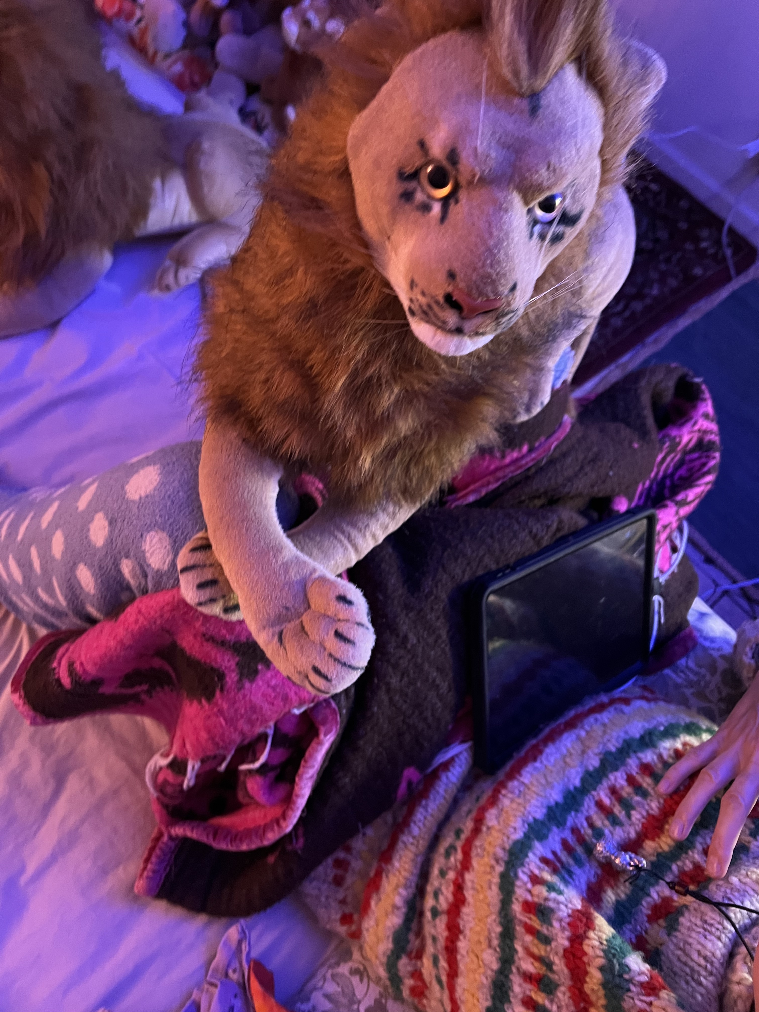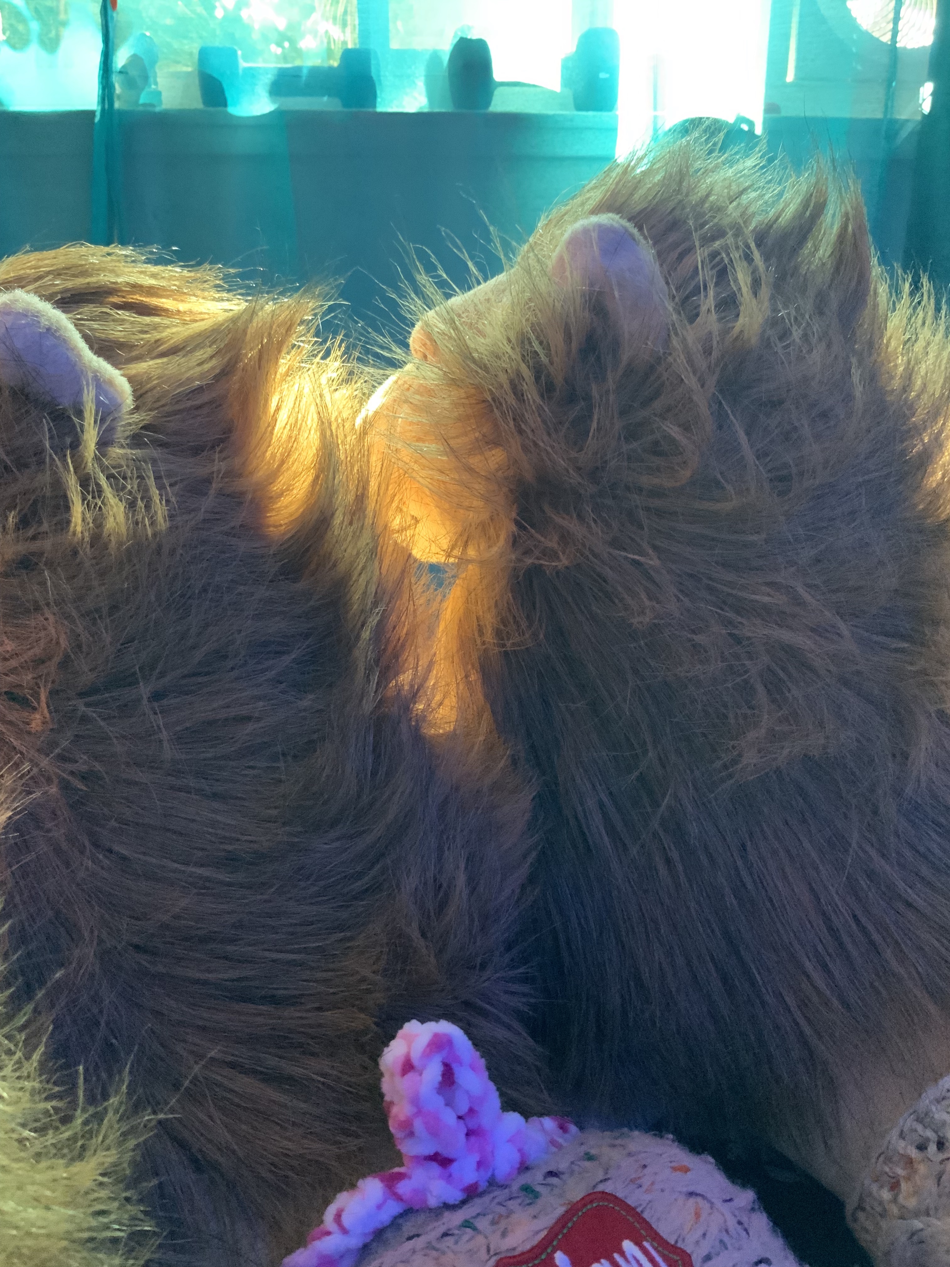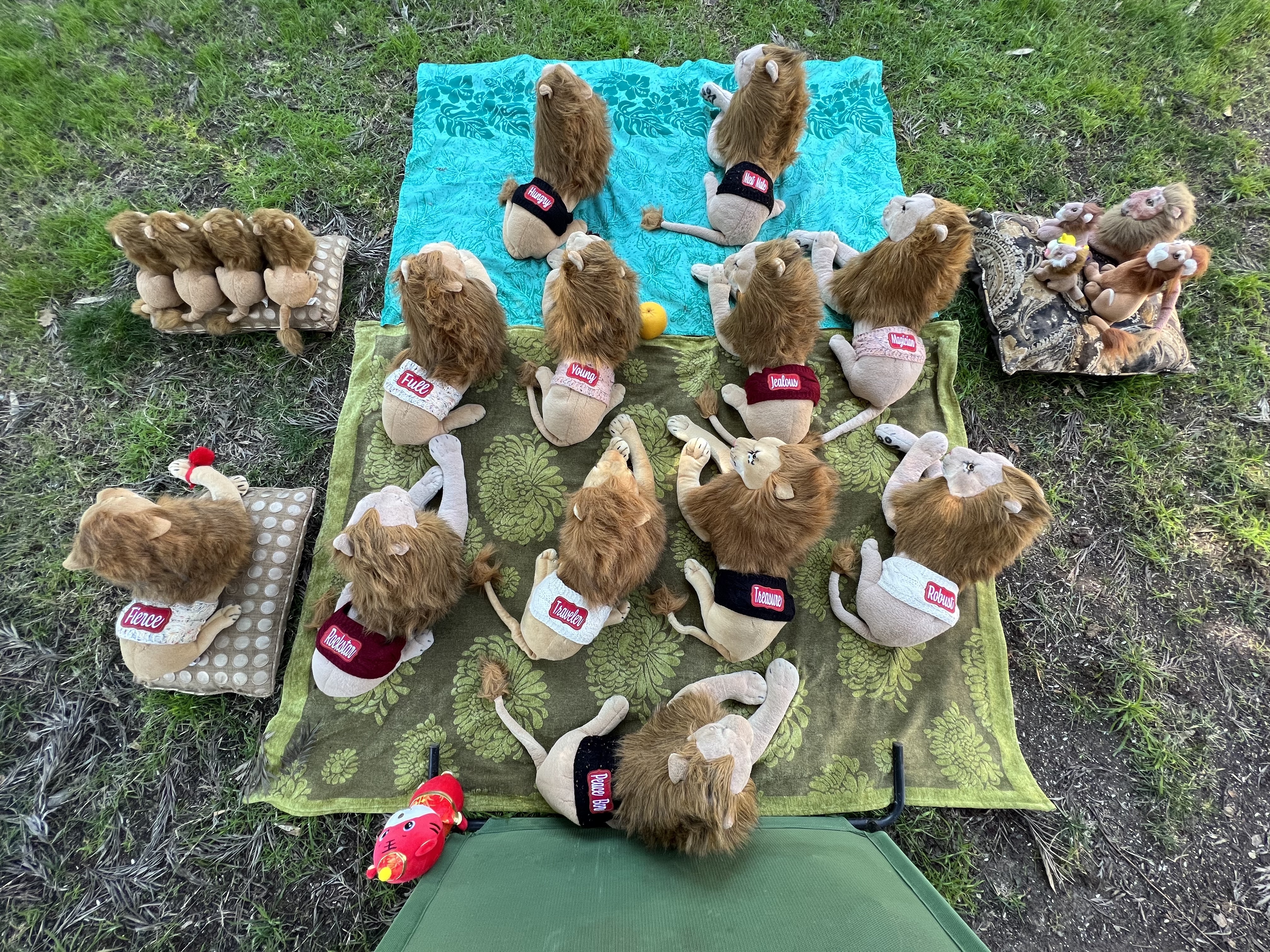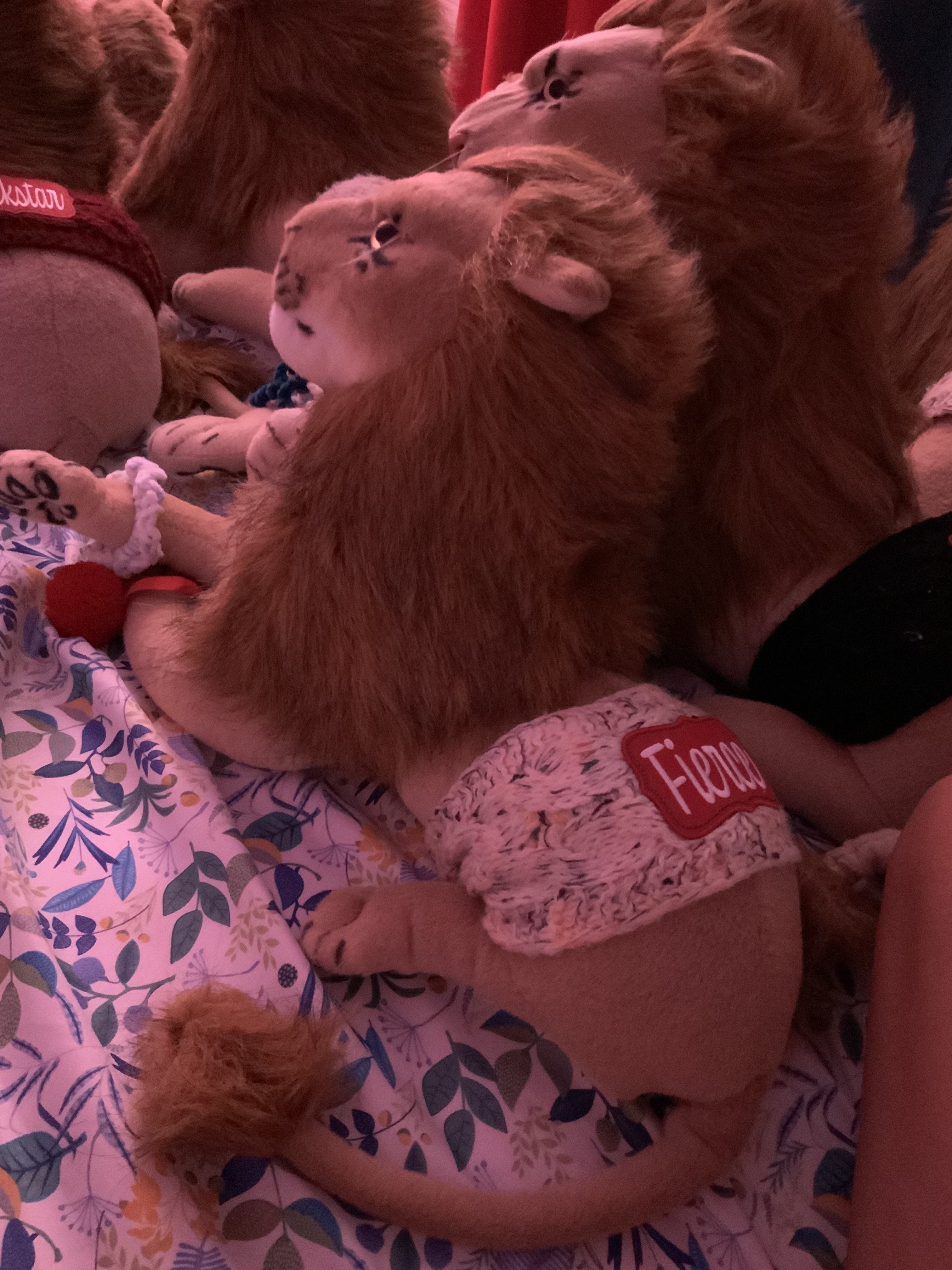 Regarding the visual lion updates, I had left off with the treasurer Rob Treasure Lion. Since then, two more lions have been added to the Inner Crew. Rob Traveler Lion has an irresistible “Who, me?” look in his eyes, saying, “Madam, why are you looking at me like that?” before devotedly falling into my arms. Rob Fierce has a striking fiery glow in one of his eyes.