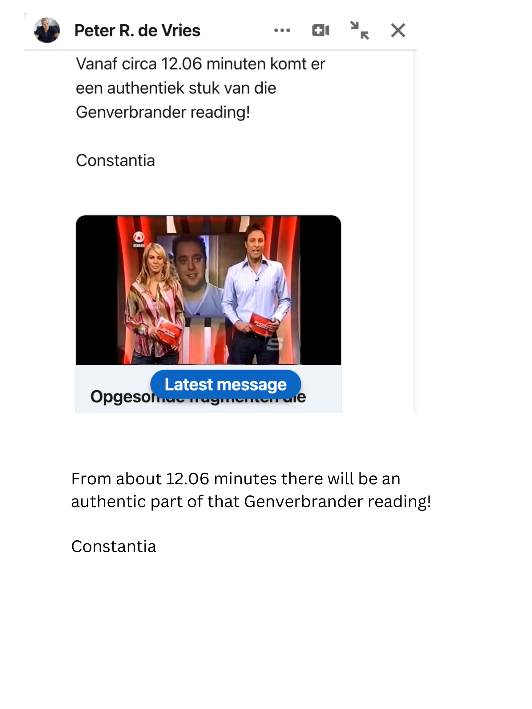 Ilan Hoekstra successfully produced three parts that I, as an expert on the case, was quite satisfied with. However, in the final episode, in my opinion, he stumbled considerably by consulting the know-it-all, and in this case, certainly jaded Kees van der Spek, regarding Stan and the St. Anna cemetery. I had an uneasy premonition about Part 4 the whole time, and it turned out to be true. In Part 4, Ilan suddenly, in his own words, “consulted” Van der Spek, who then proceeded to delicately elucidate that Stan had been an ordinary, naive young man and a victim of Joran, with the entire St. Anna cemetery story being just one of Joran’s many tales to a gullible Stan. I’m quoting Van der Spek in its entirety (excluding Hoekstra’s parts in between).