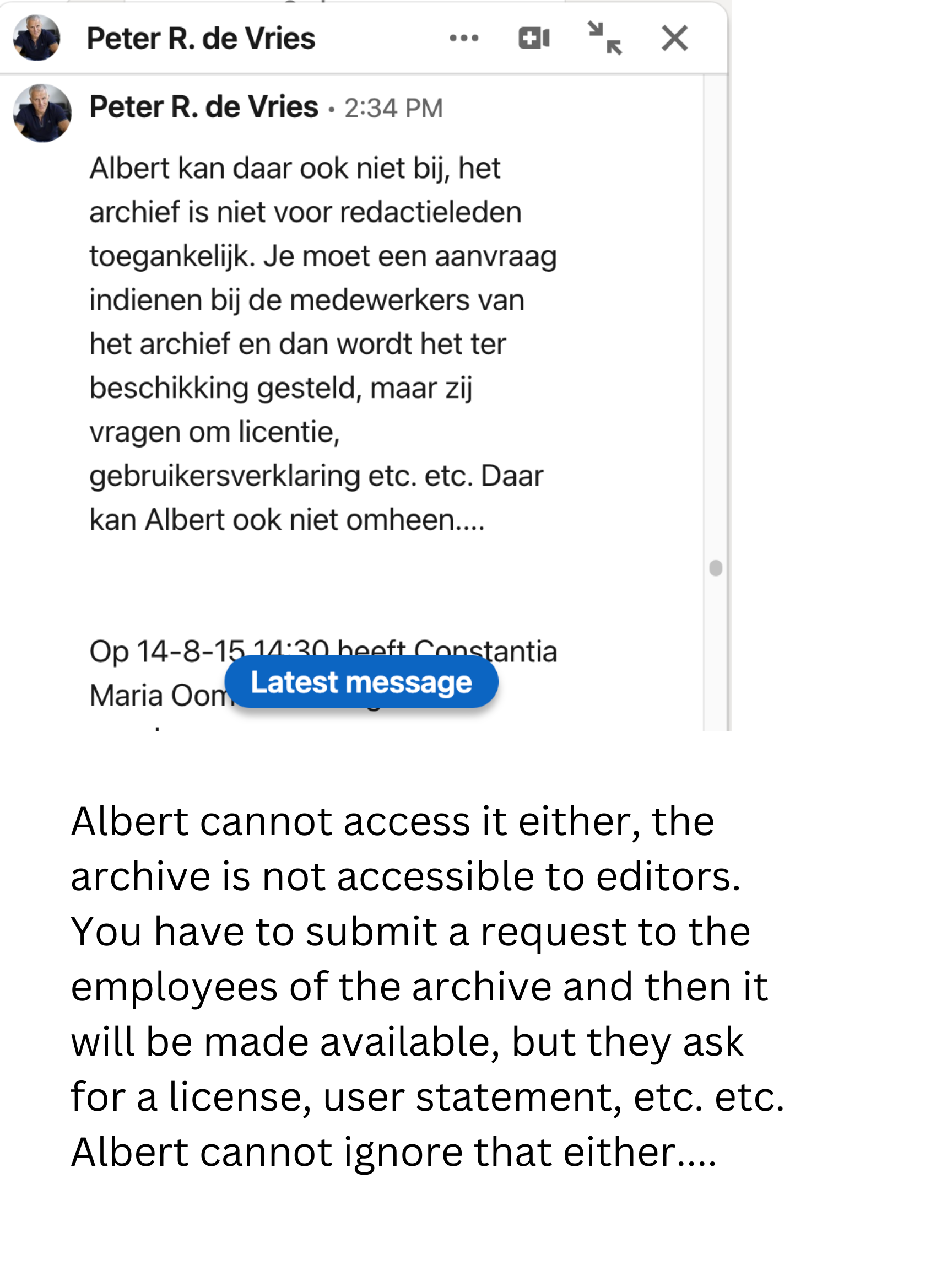 My first reaction to Part 4 and its title, which I saw a day before its publication, was: “Wait, wait, what, Kees… Kees, who, not THAT Kees?”: Kees van der Spek. Yes, indeed, that Kees. I sent Ilan an email with not only what I considered to be important substantive concerns but also the following: “The title makes it seem as if Kees is a friend of Joran’s, you might almost think that Kees is, considering his reluctance to pursue the St. Anna tip.” So, in terms of the title, the Podcast is inaccurate, since to my knowledge, Kees isn’t a friend of Joran’s.