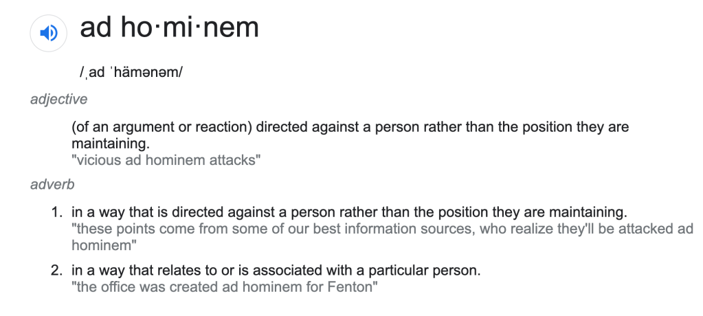With the following list of fallacies and a few other things that I have named myself, because I could not find the correct existing name, I want to expressly say that as far as I am concerned this is not a game whether I have given the correct name of the fallacy in the screenshot. Anyone who thinks that is the case may not have a clear idea of the meaning of my blog. I’ve consulted a few reputable lists and they also say that it is sometimes difficult to find the right denominator, also because a fallacy sometimes seems to fall under a few umbrellas. I would like to invite the reader to join me in looking at the kind of fallacy and, if necessary, come up with a different category. It’s not about being right with this list, it’s about showing something. I was accused on Twitter of leaving out necessary context with my screenshots and referencing the skeptic fallacies. My reaction to that is that the fallacies really usually stand on their own. If someone shouts: “You have a lower education than me, so shut up”, then that is a fallacy, even without context, and in this case it is an ad hominem. If someone just says: “Wappie, shut up”, then that is a fallacy, and that is from the category “Dismissal without arguments”. Only in rather rare cases, in my view, is a more elaborate context indeed necessary, such as the one time on Twitter when I purposely built in an ad hominem in response to someone who really didn’t understand how Pepijn van Erp was adhominating. I only added “A H” as an alert (but that alert was not detected!). The person immediately fell into my educational trap, but had already blocked me before I could explain the context of my ad hominem.